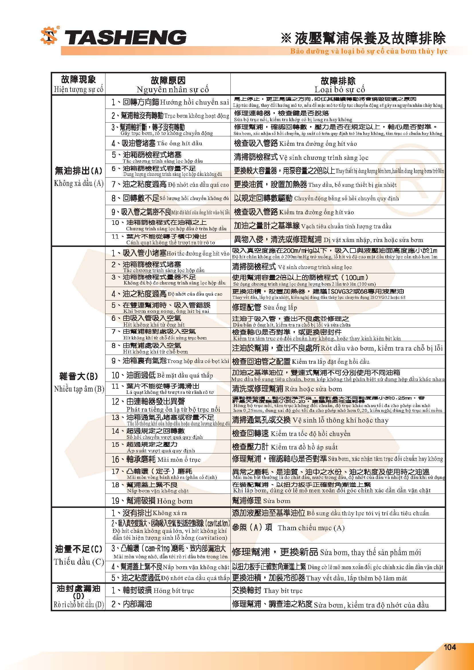 • Bảo dưỡng và loại bỏ sự cố của bơm thủy lực
