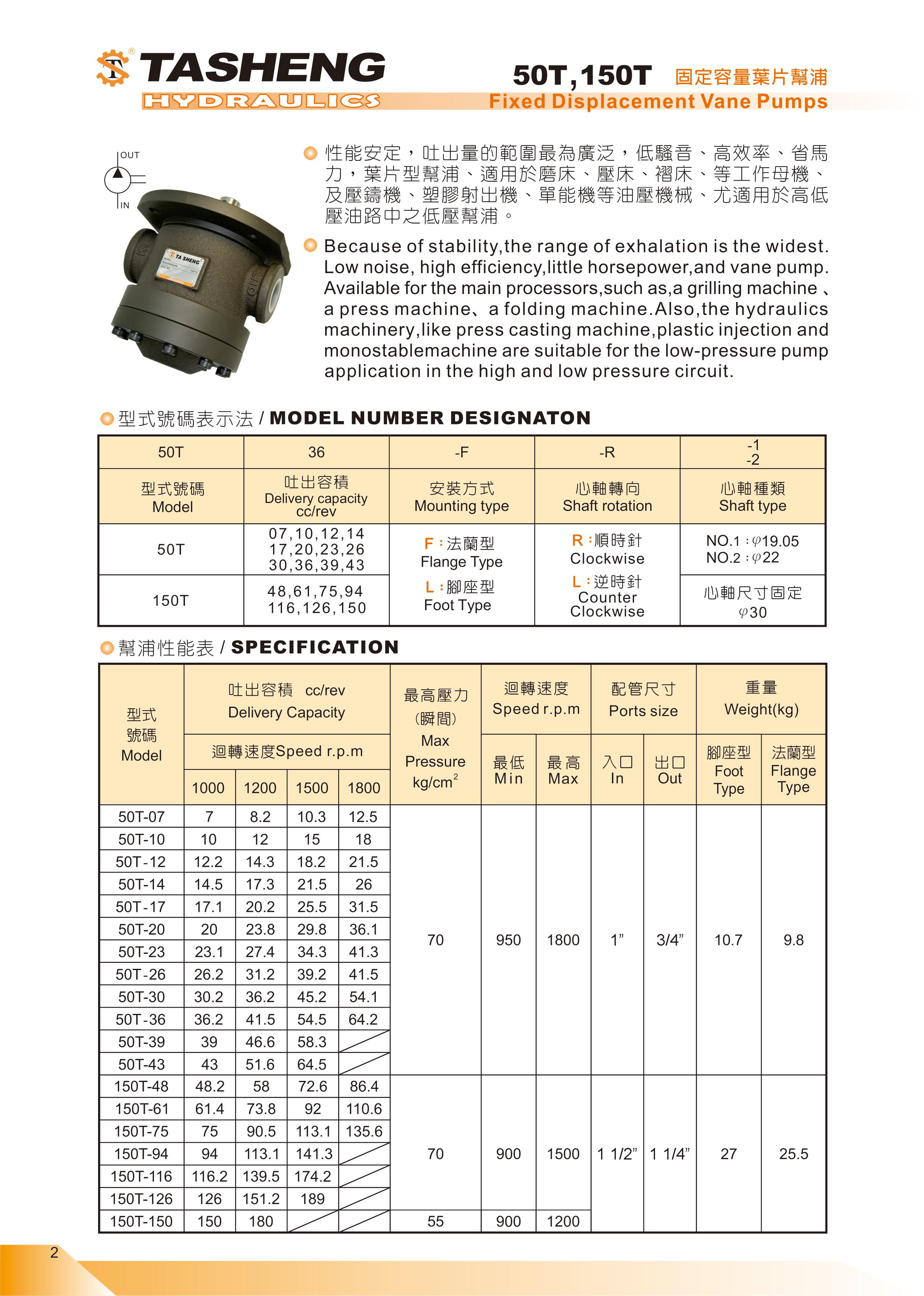 50T,150T系列固定容量幫浦 | 大生油壓機器廠