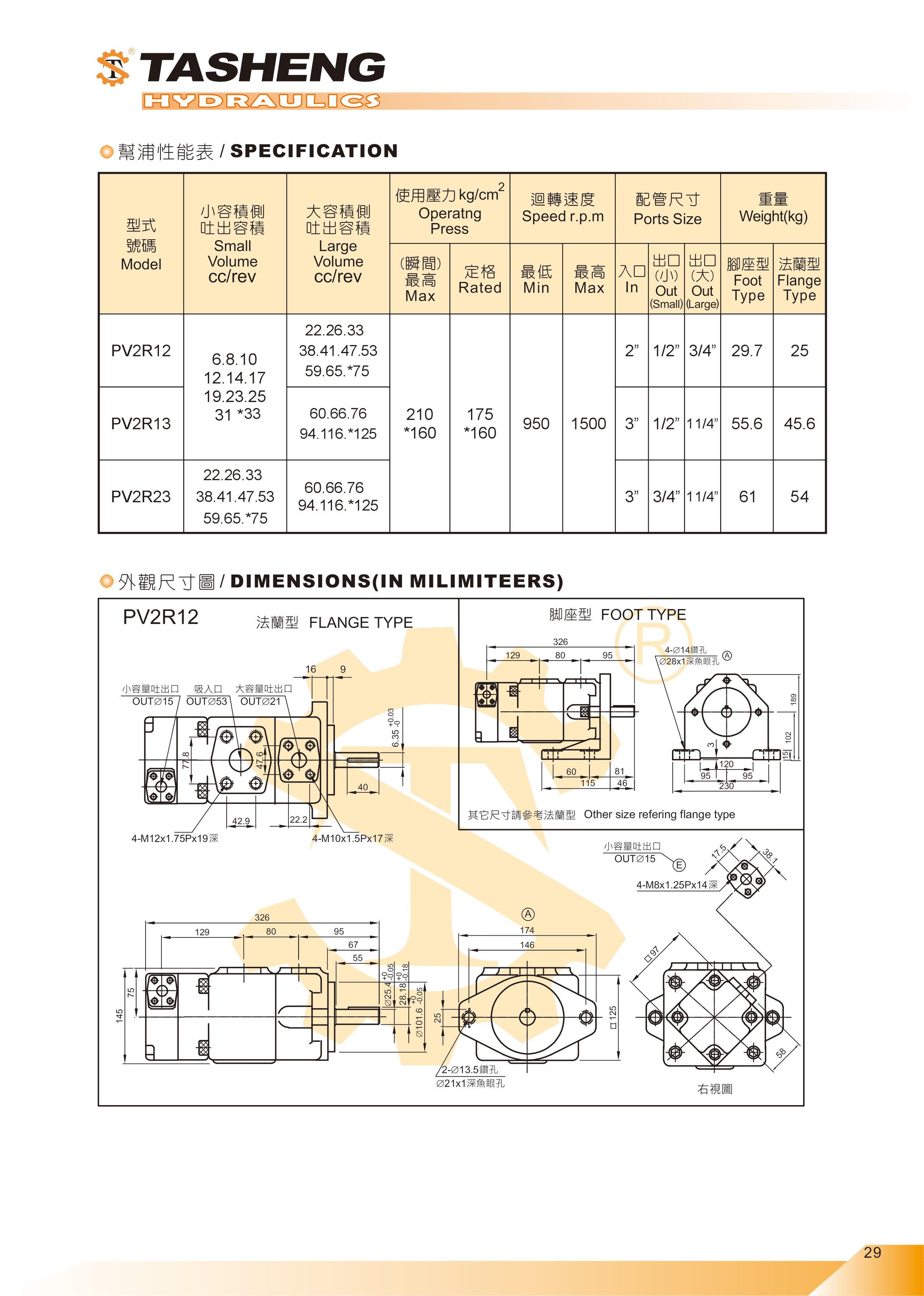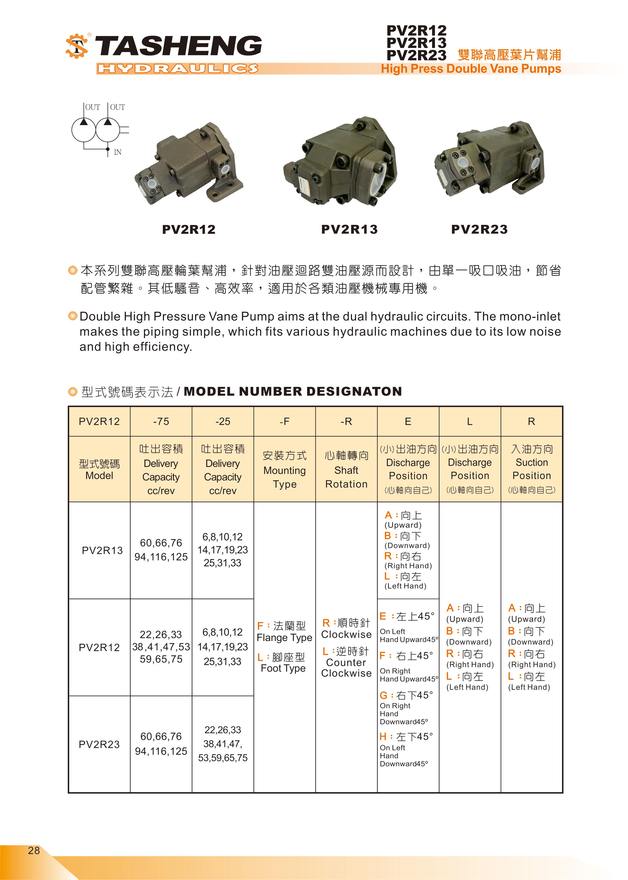 PV2R(12.13.23)系列高壓固定容量雙聯葉片幫浦 | 大生油壓機器廠