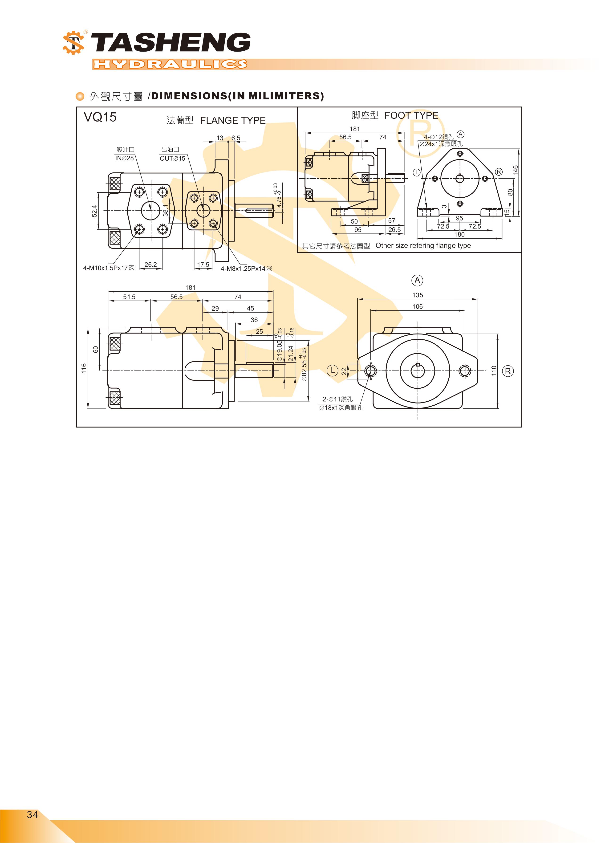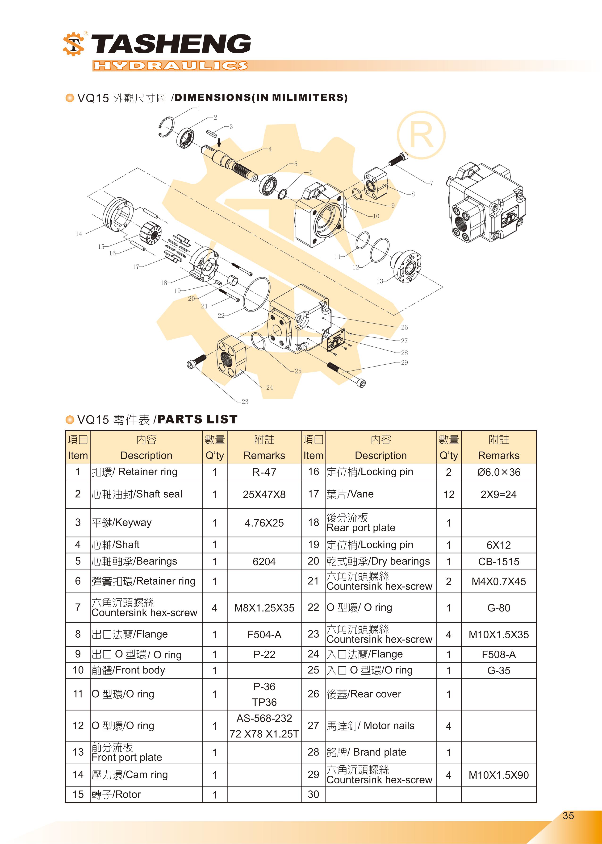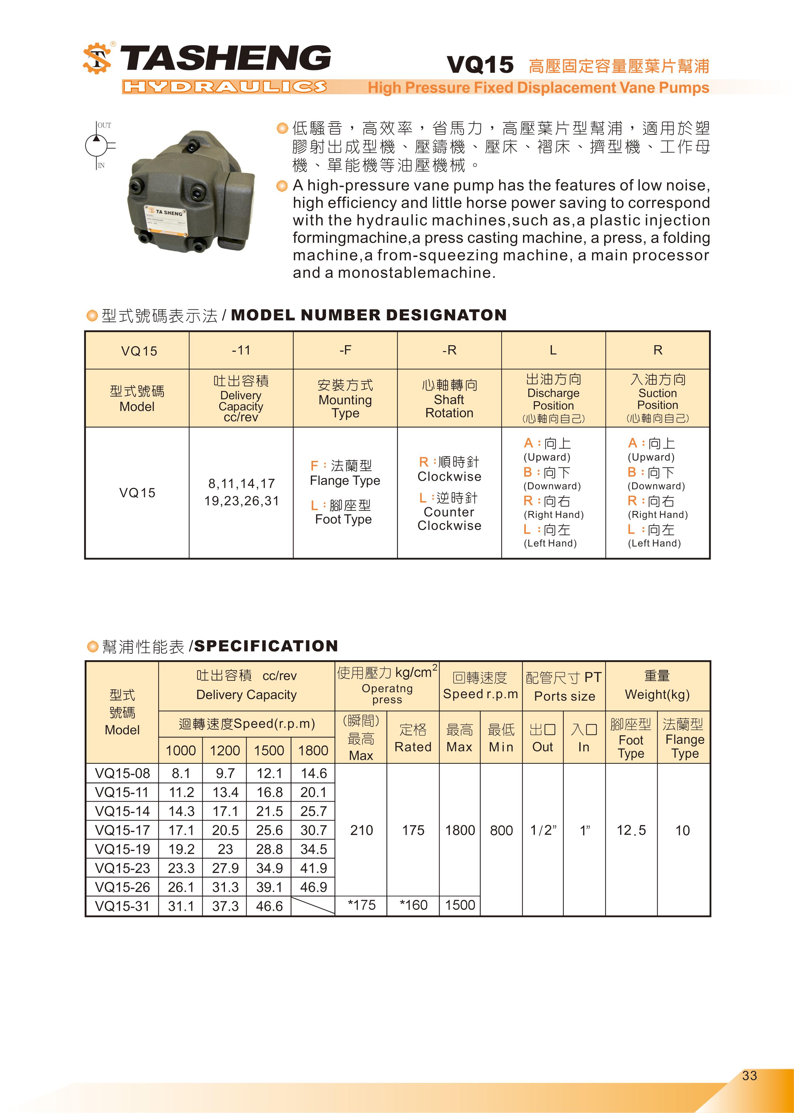 VQ15系列高壓固定容量葉片幫浦 | 大生油壓機器廠