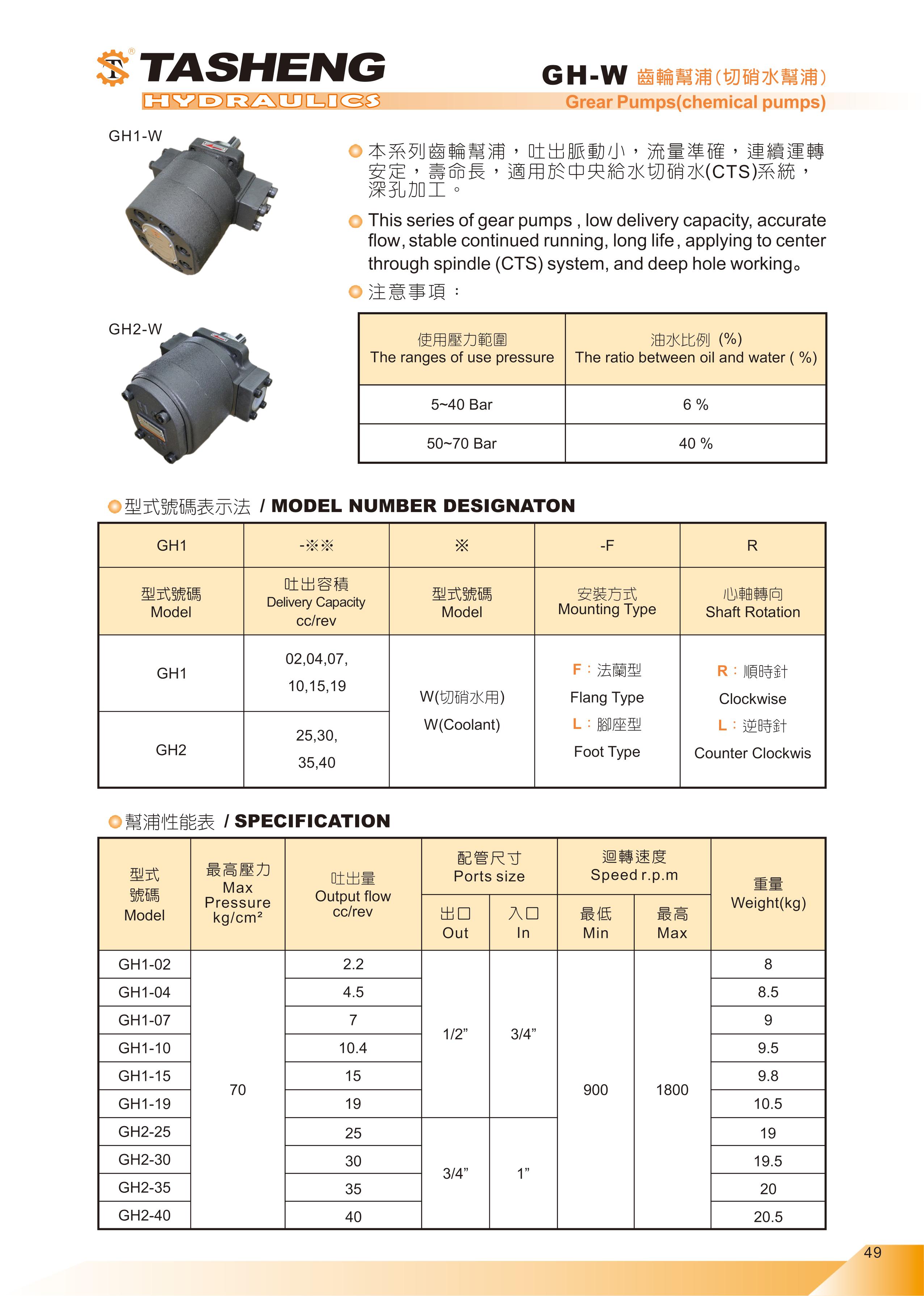 GH-W系列齒輪(切硝水)幫浦 | 大生油壓機器廠