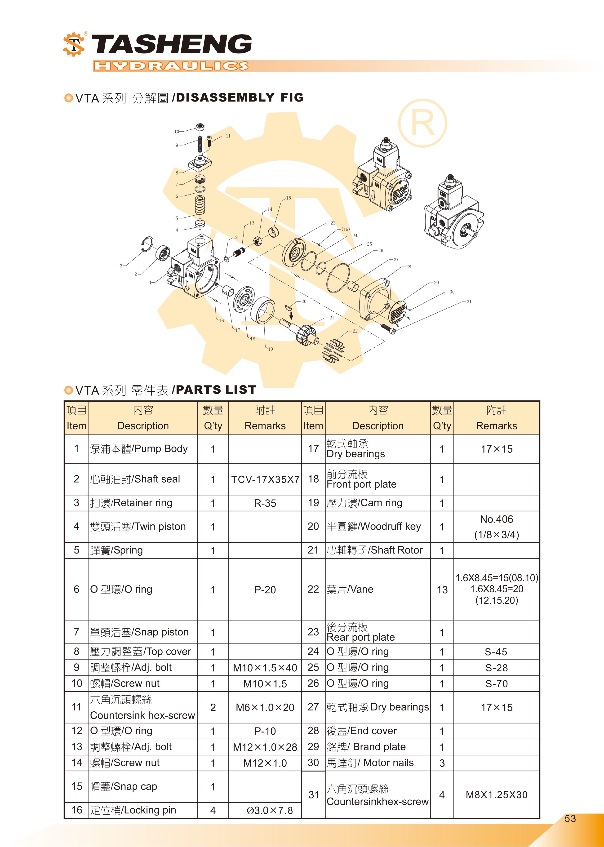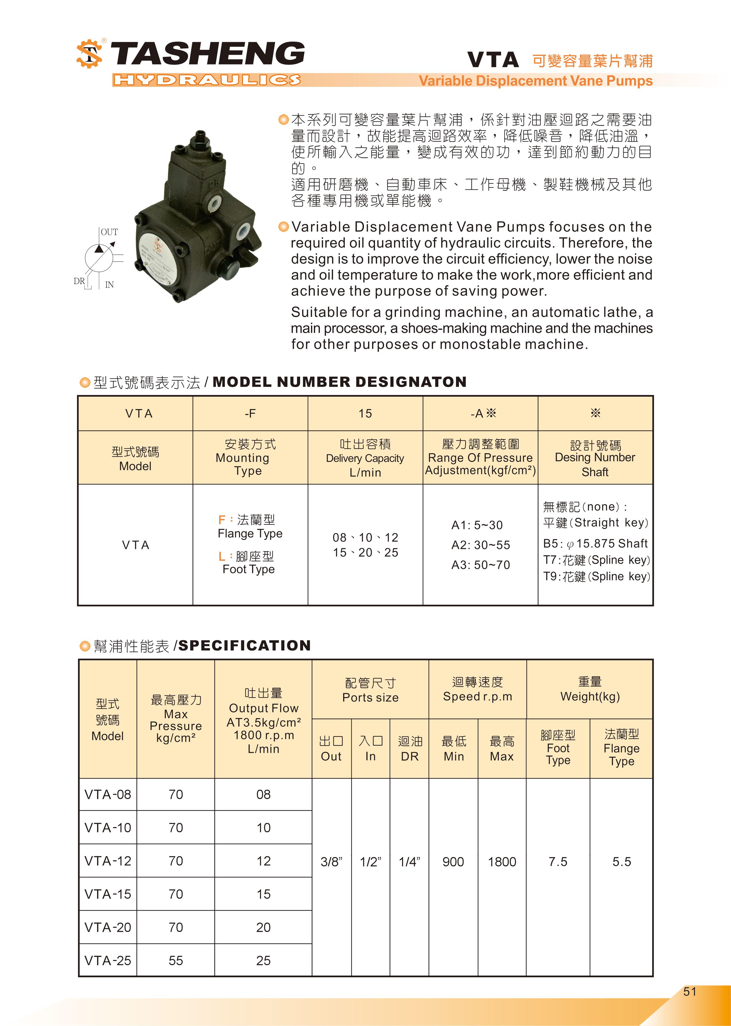 VTA系列可變容量葉片幫浦 | 大生油壓機器廠