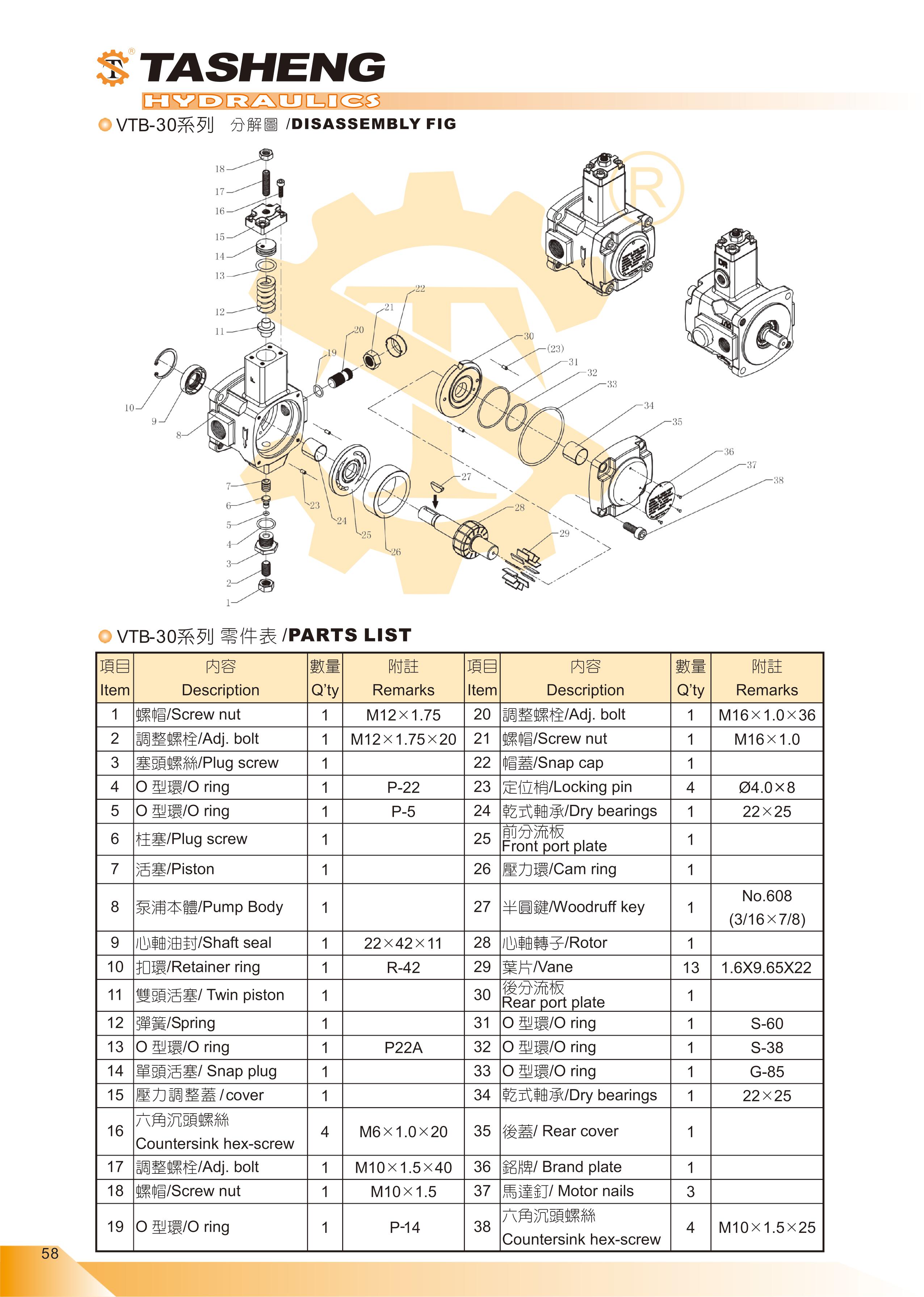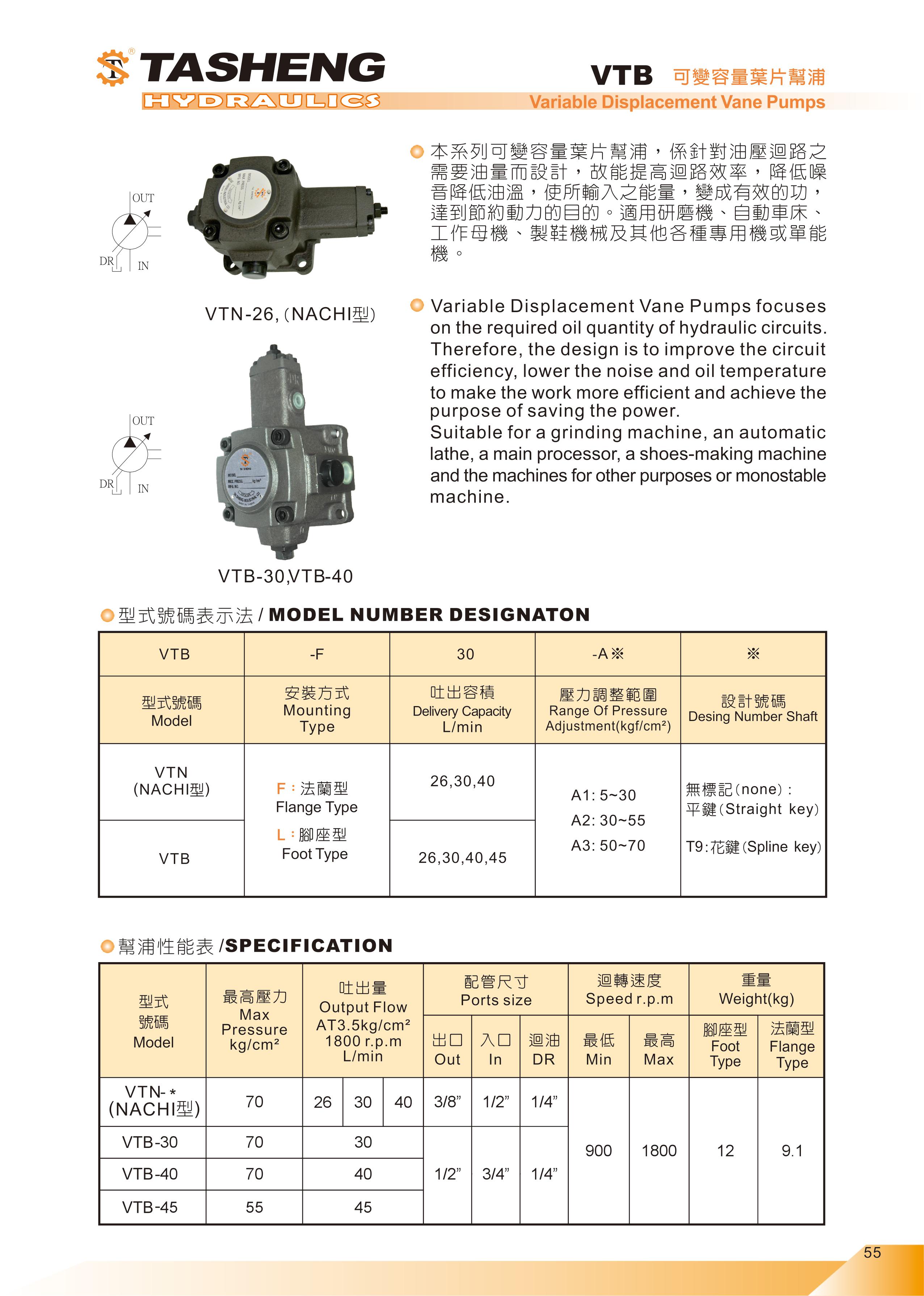 VTN,VTB系列可變容量葉片幫浦 | 大生油壓機器廠