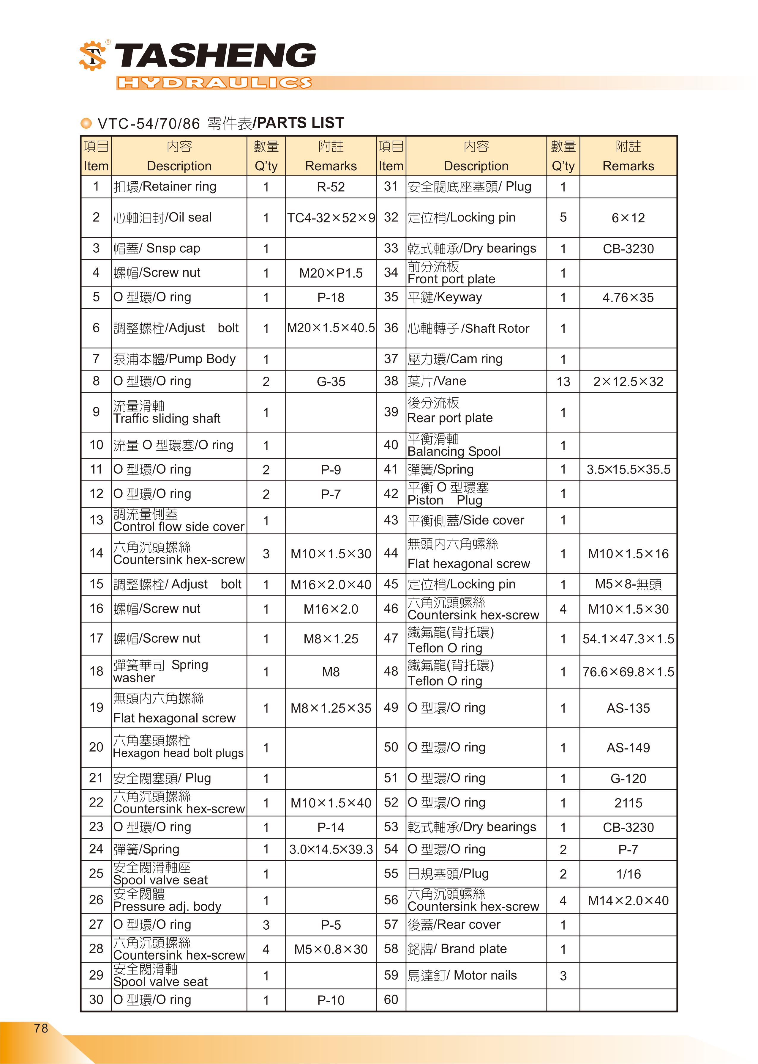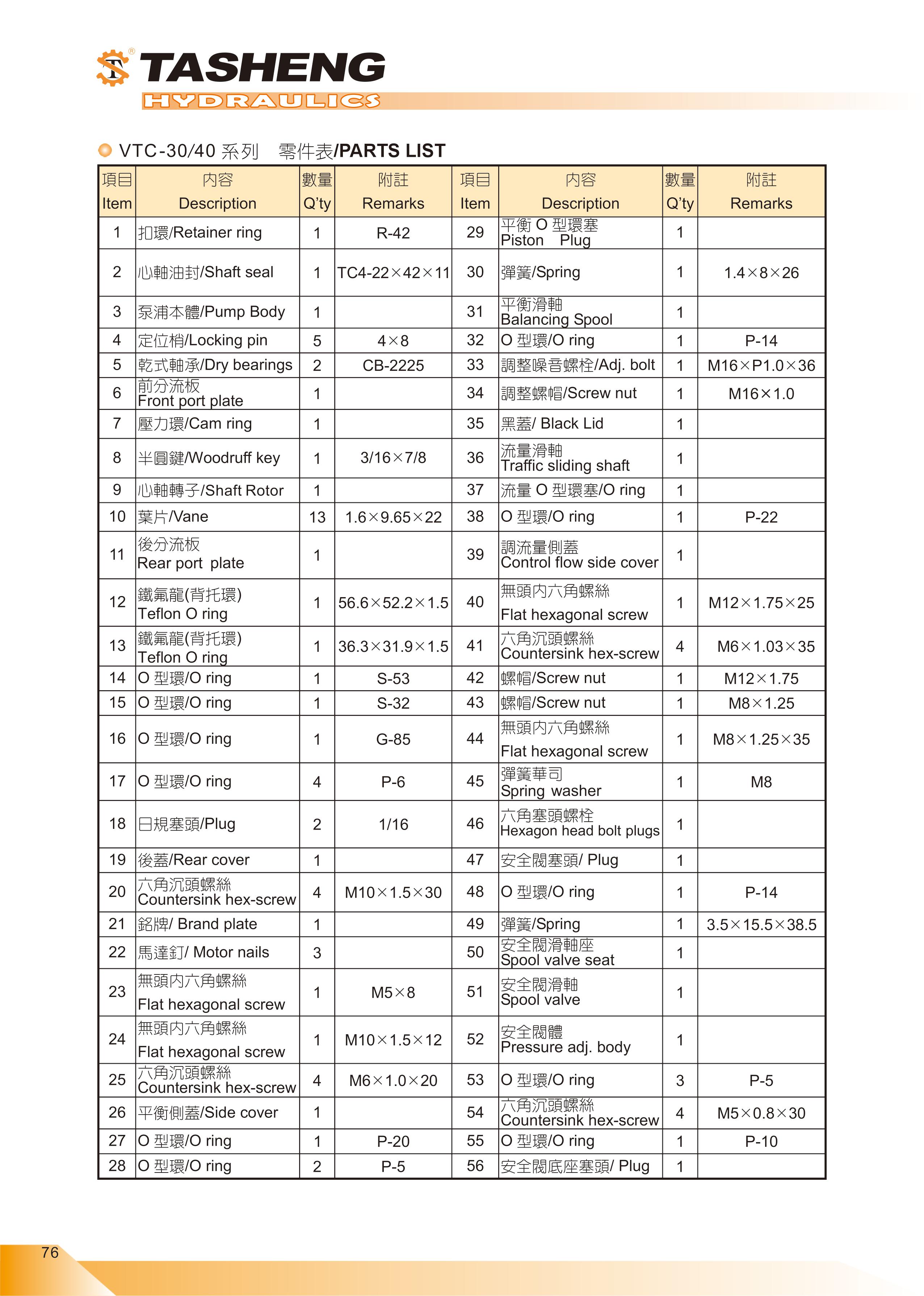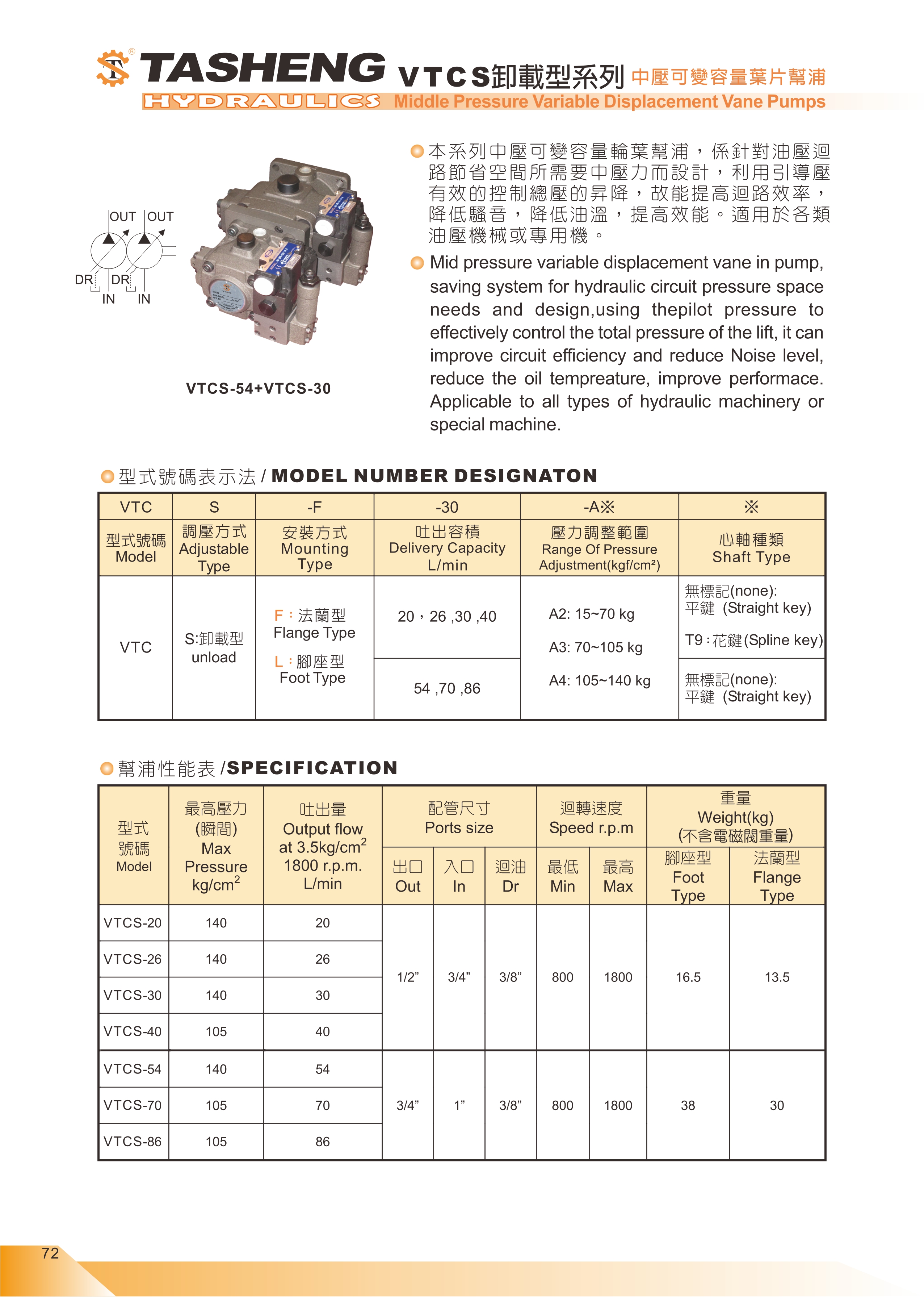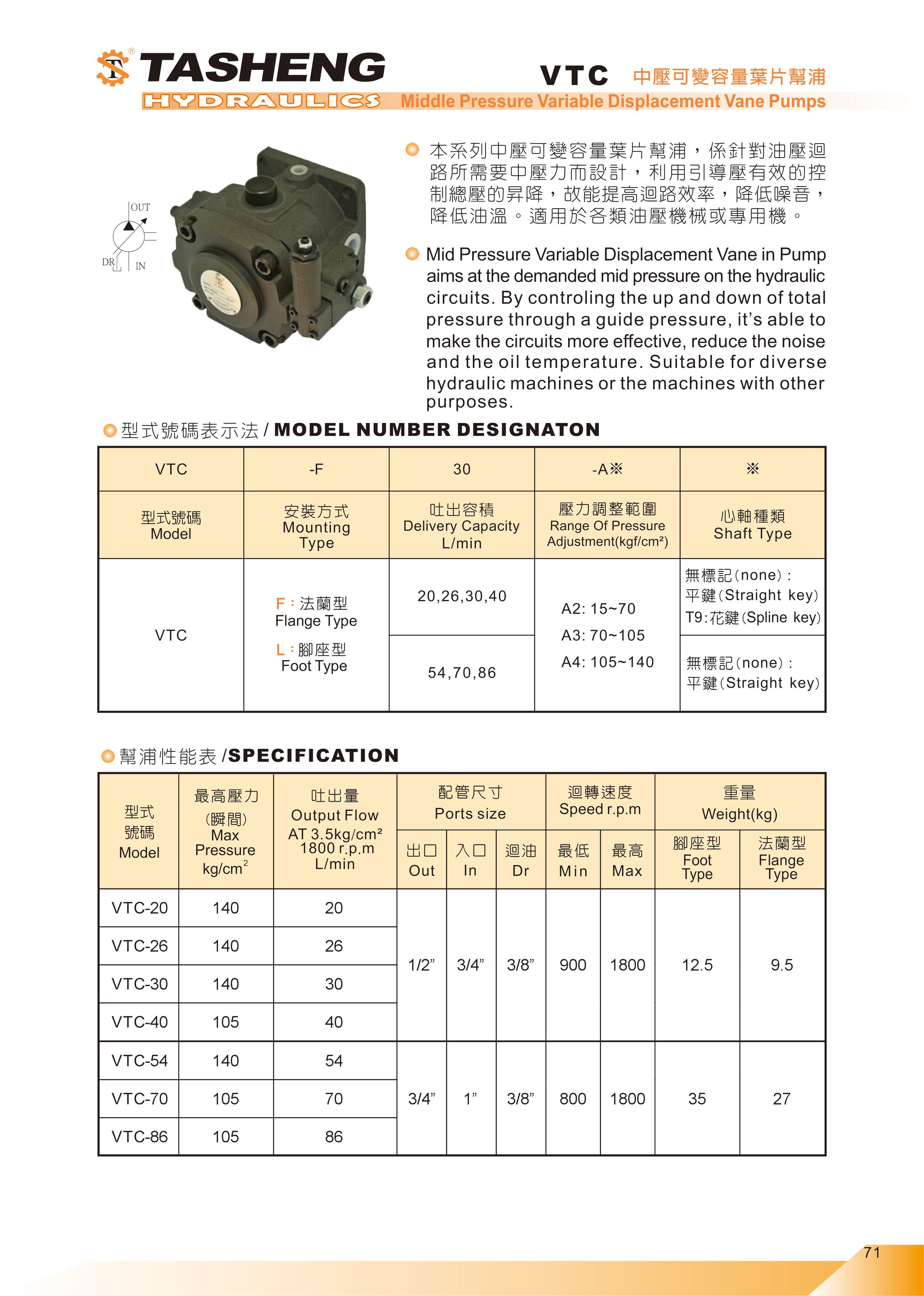 VTC,VTCS系列中壓可變容量葉片幫浦 | 大生油壓機器廠