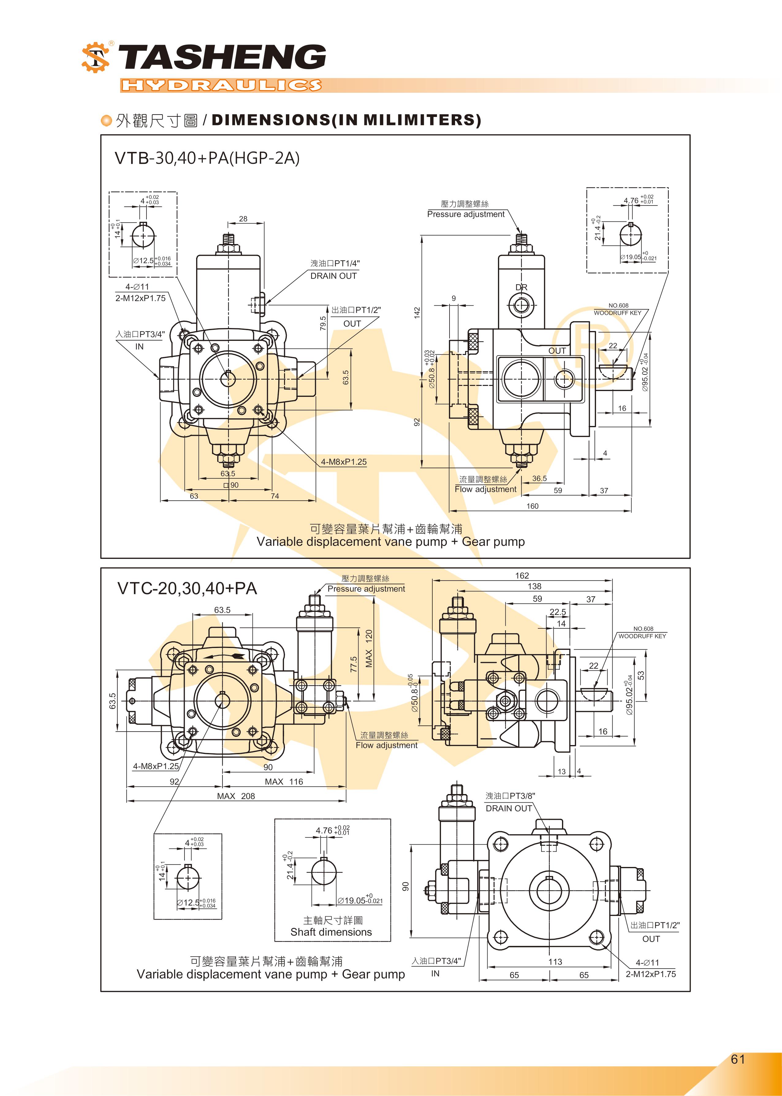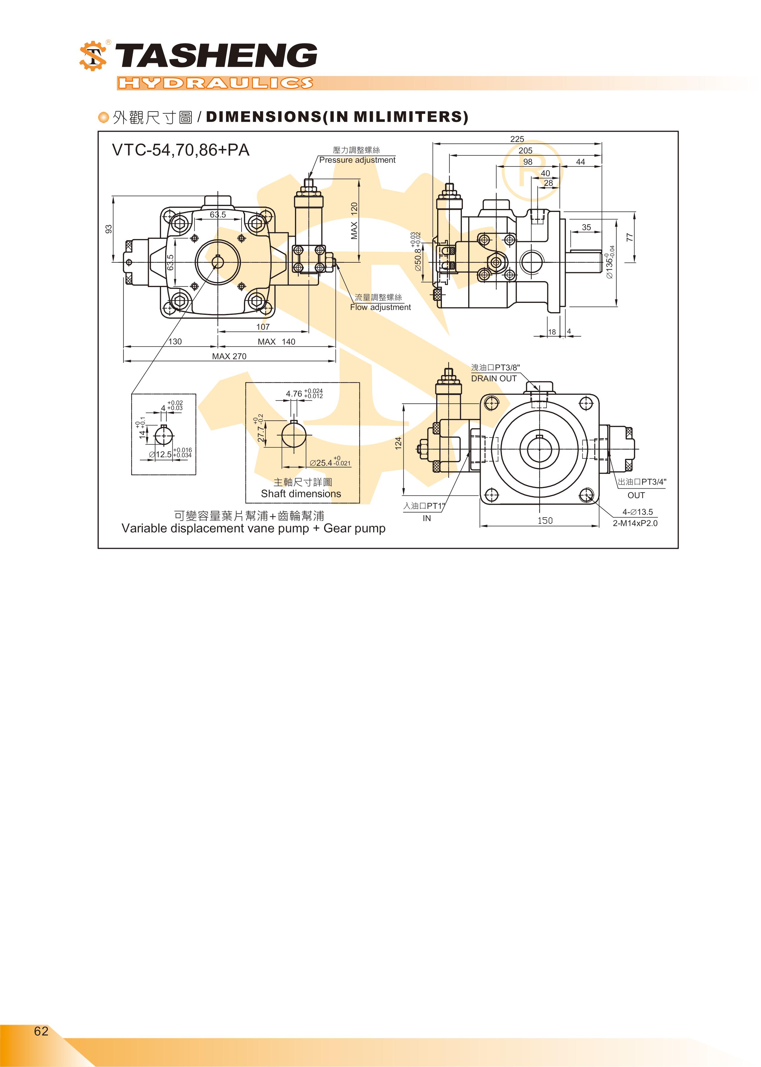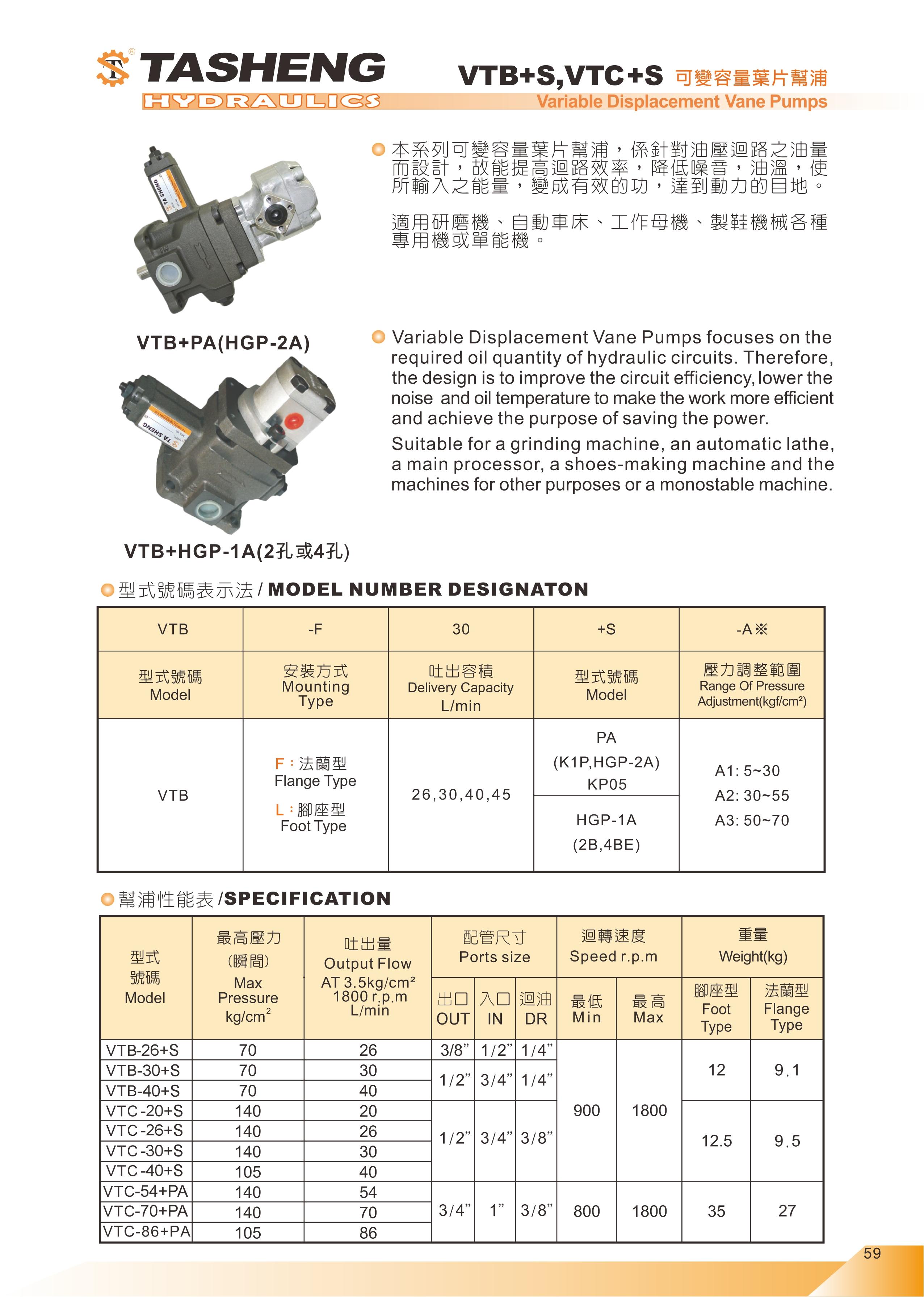 VTB+S,VTC+S系列可變葉片幫浦+齒輪幫浦 | 大生油壓機器廠