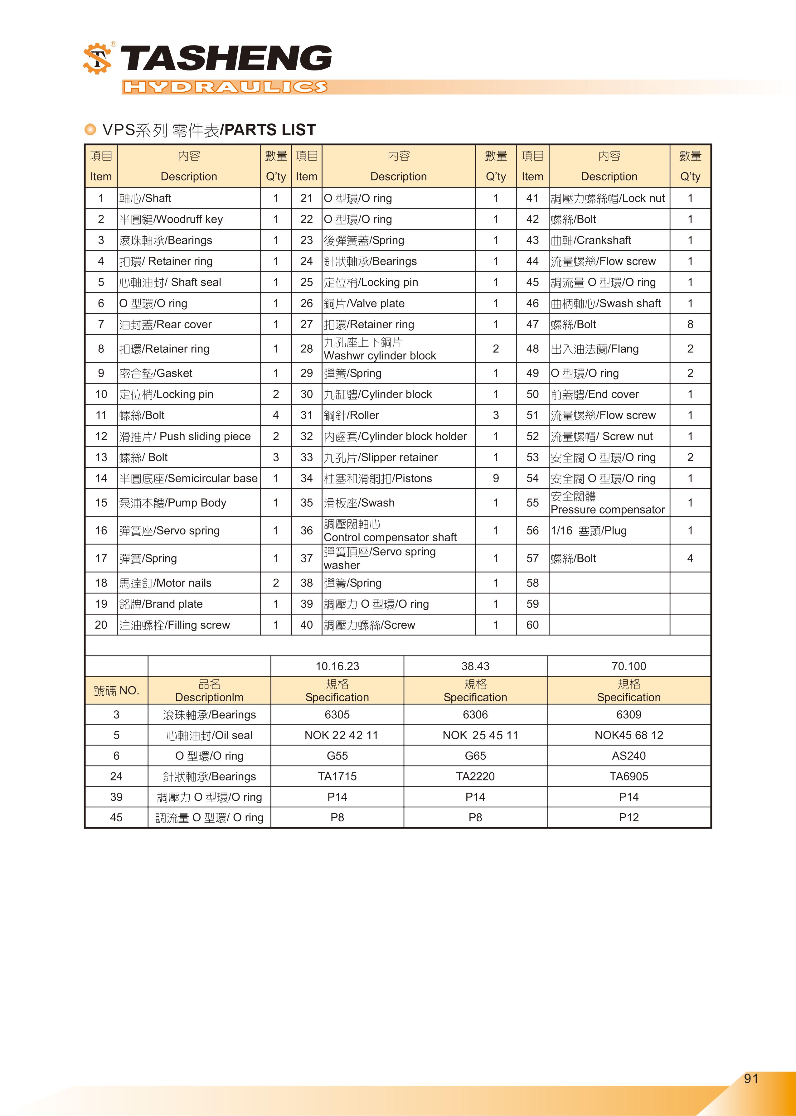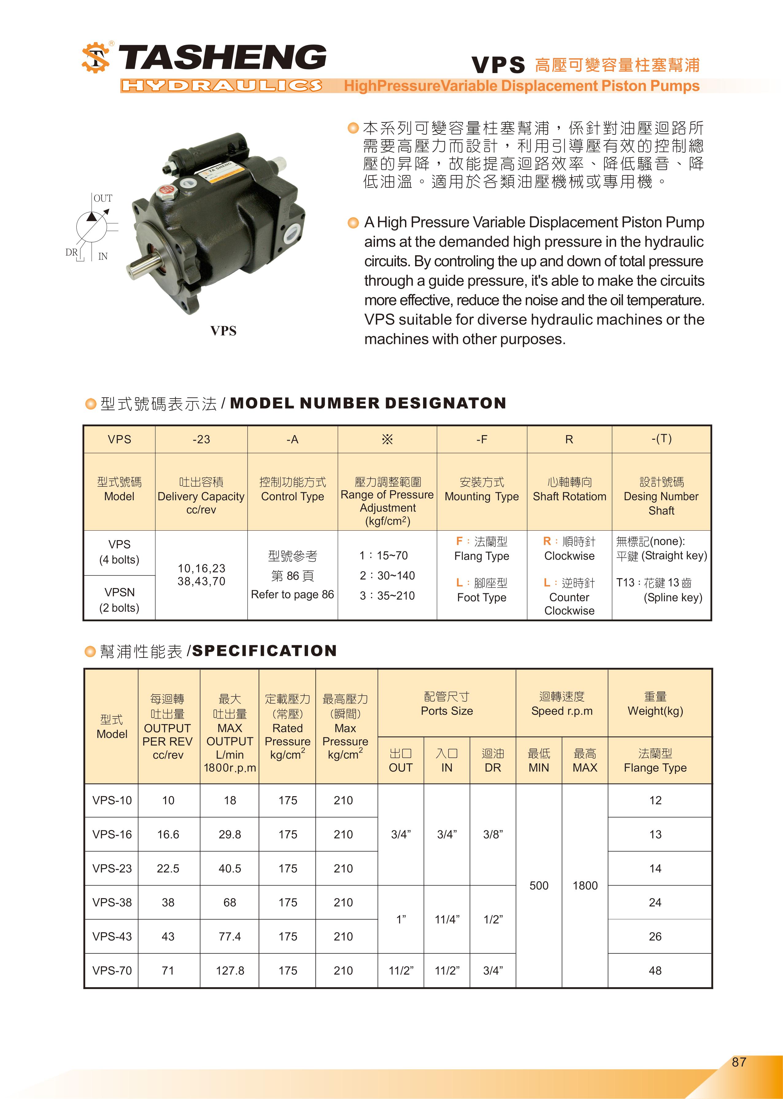 VPS 高壓可變容量柱塞幫浦 | 大生油壓機器廠