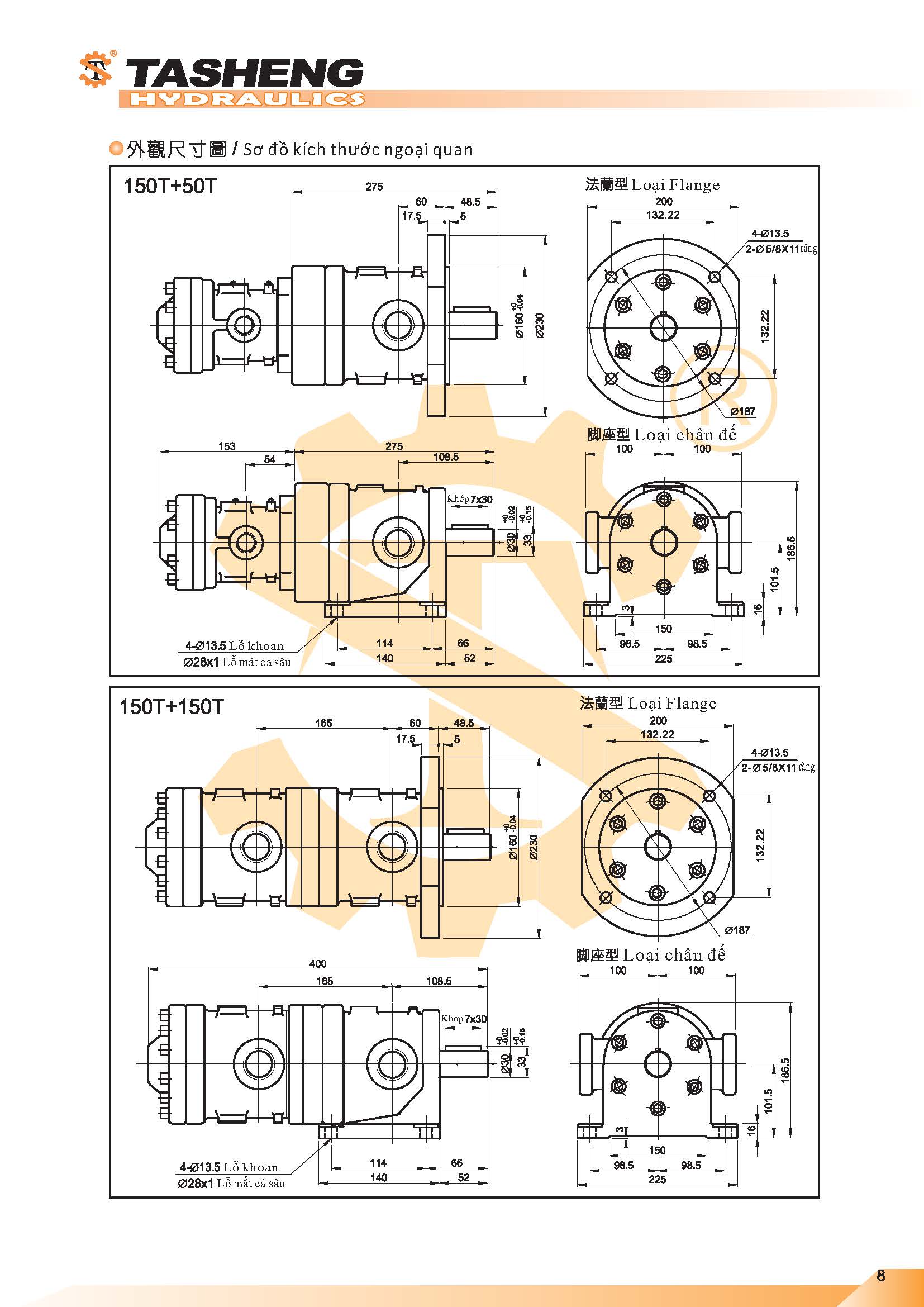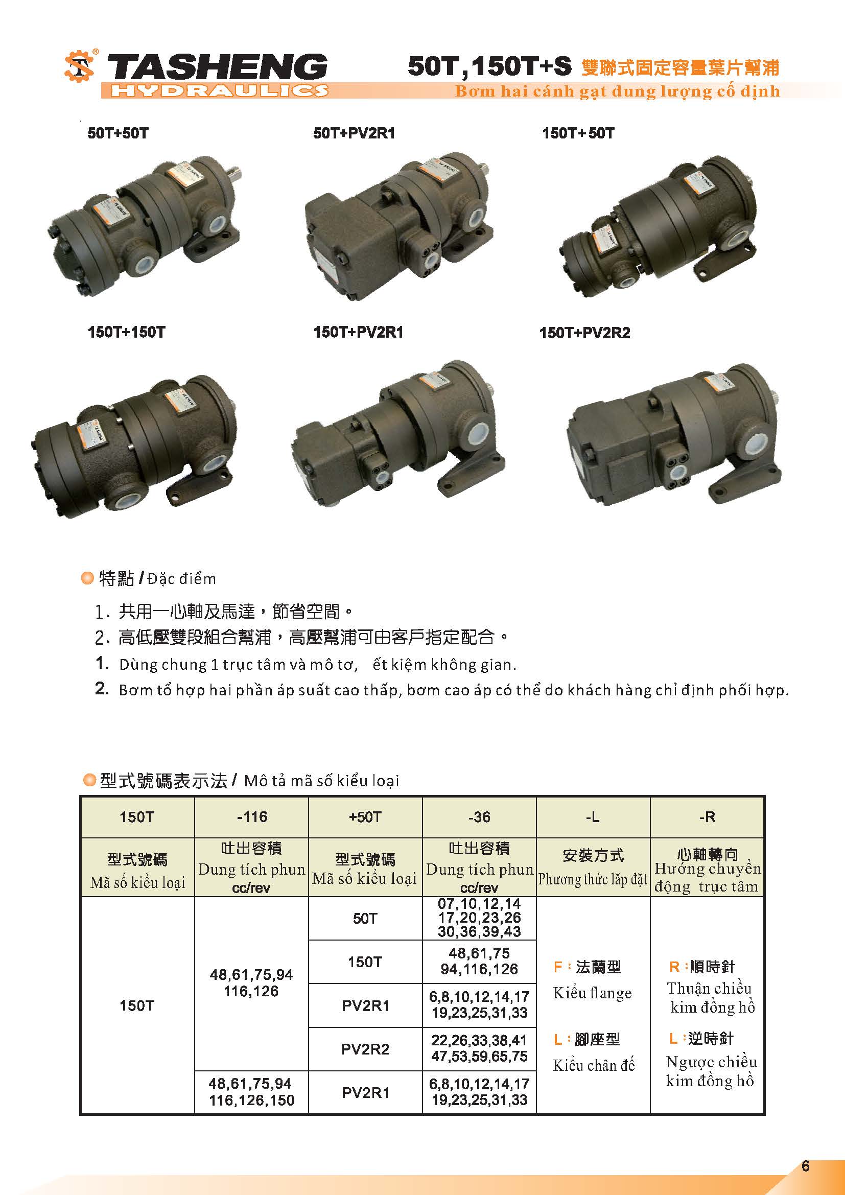 50T, 150T, + S loạt Bơm định lượng cố định / Bơm cánh quạt đôi | TA SHENG HYDRAULICS INDUSTRIAL CO.
