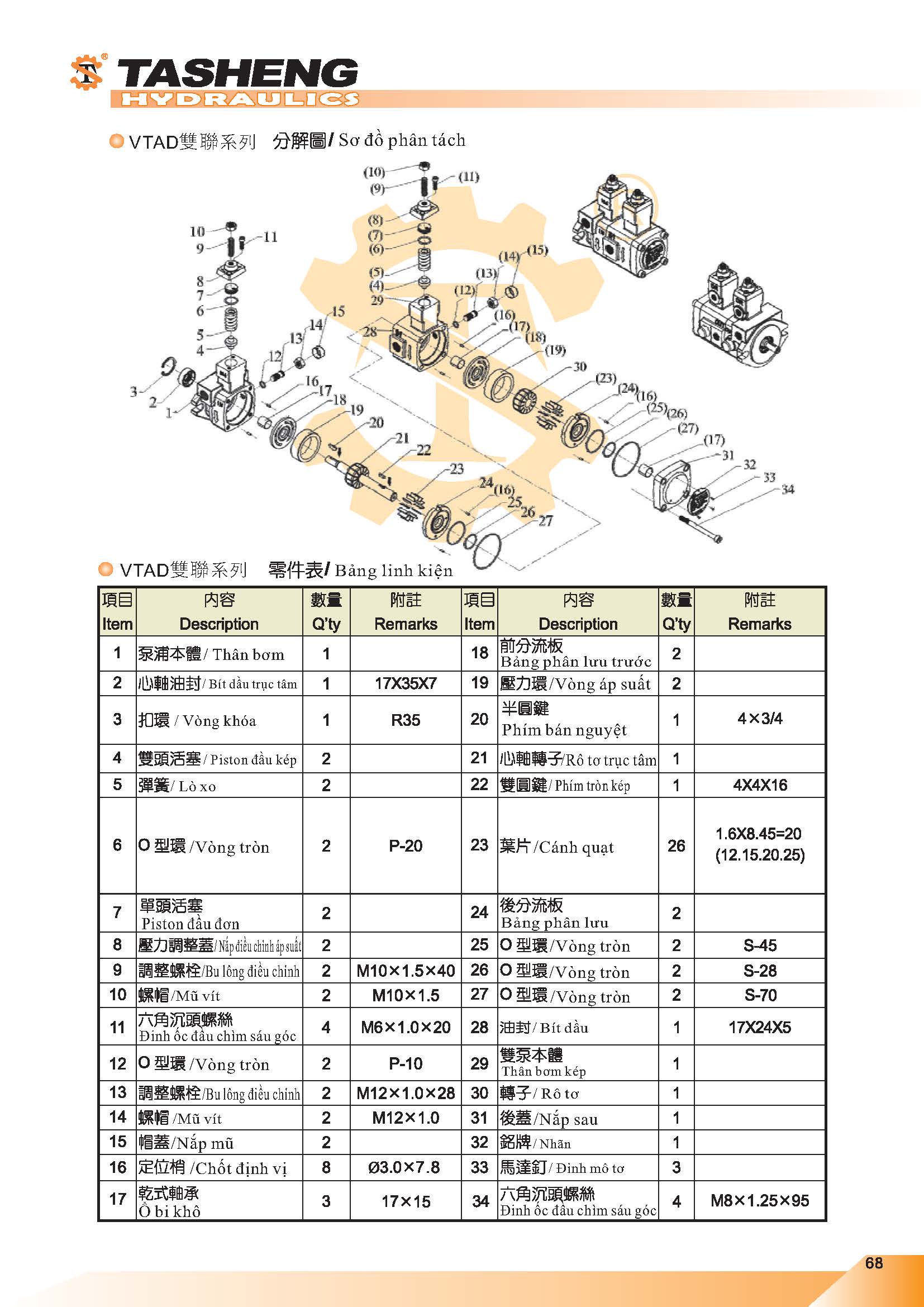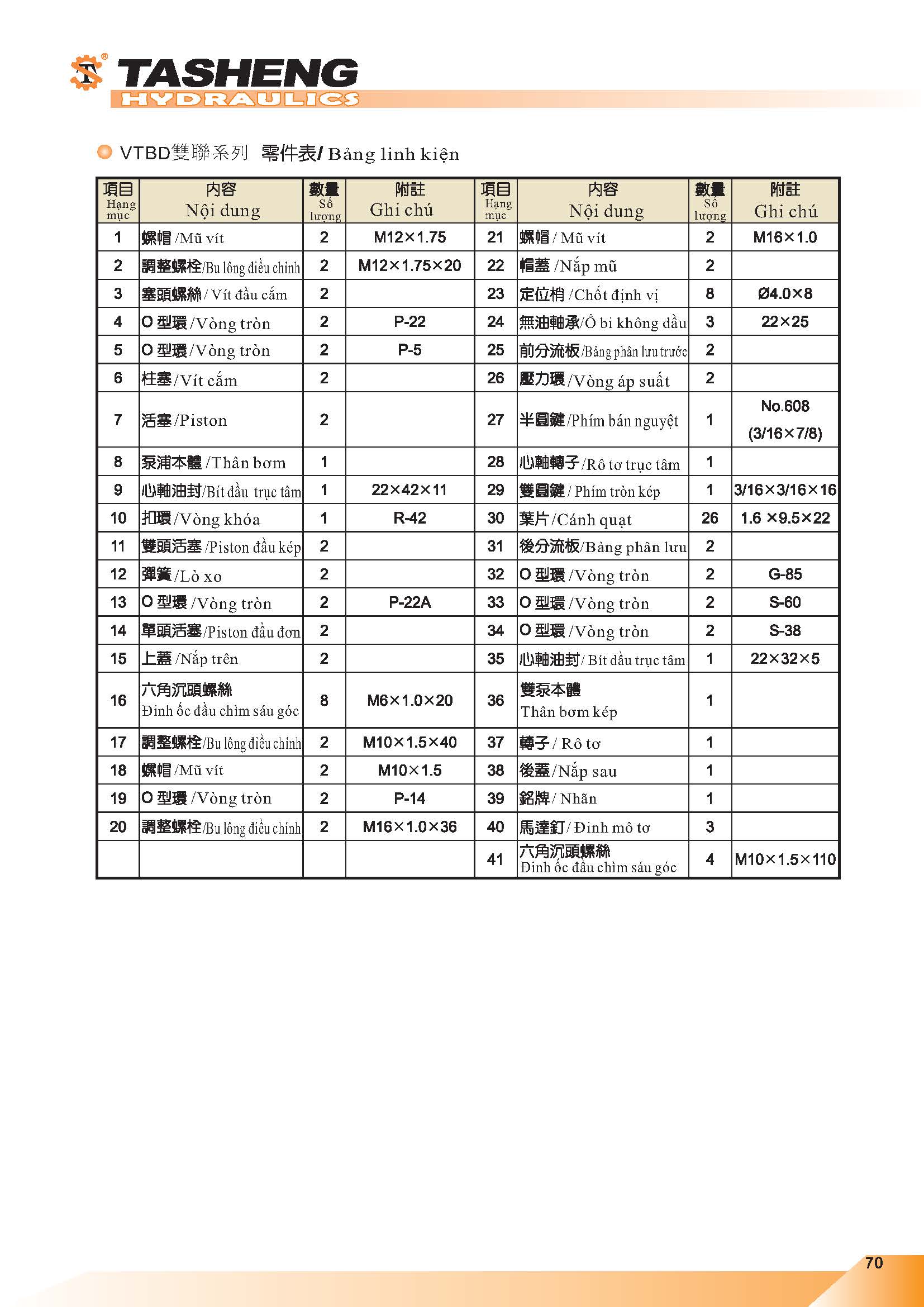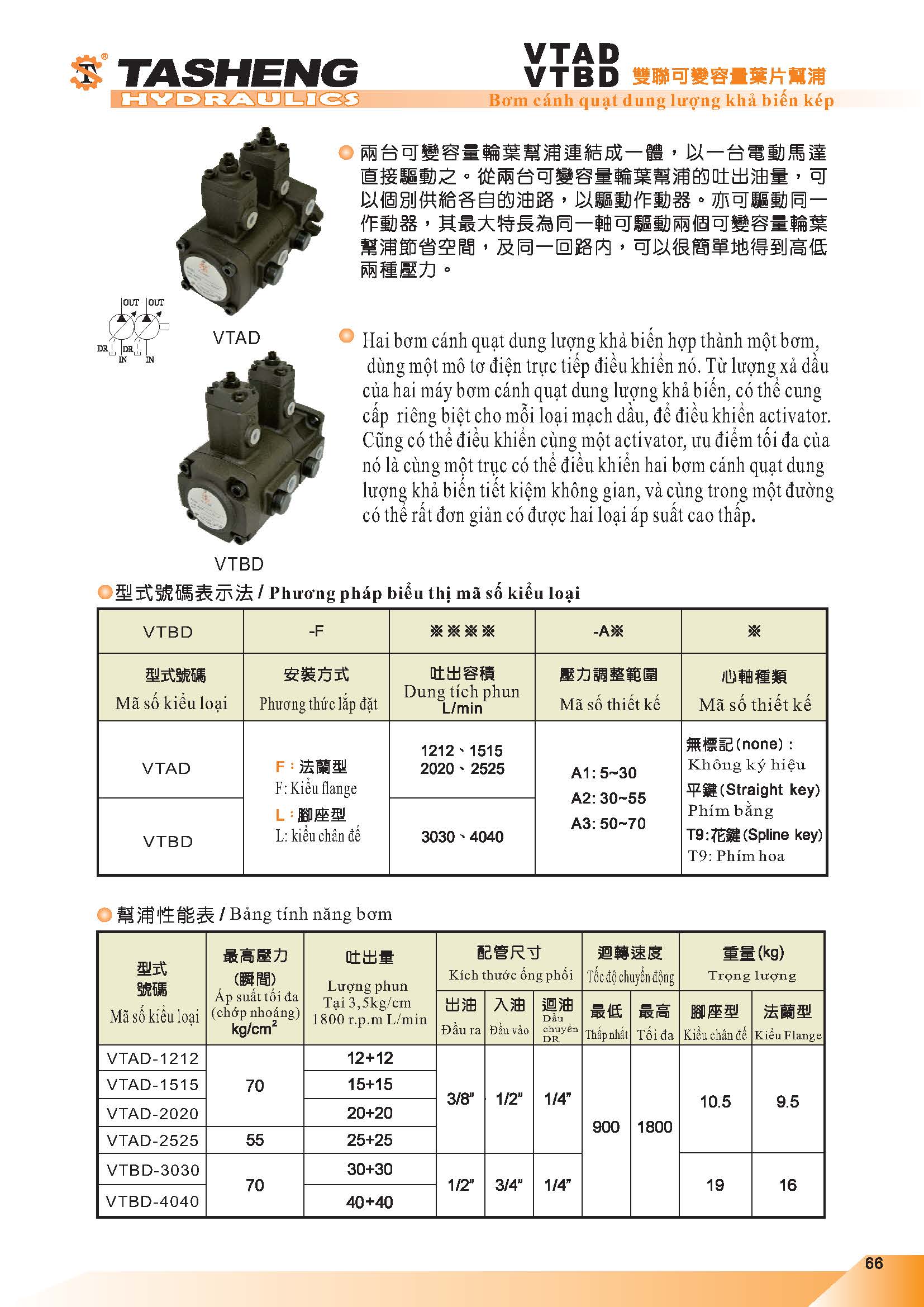 VTAD,VTBD loạtBơm cánh quạt dung lượng khả biến kép | TA SHENG HYDRAULICS INDUSTRIAL CO.